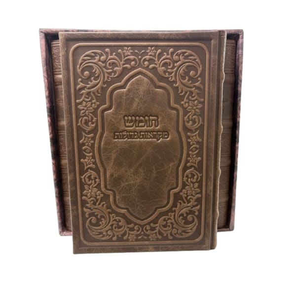Antique Leather Chok L'Yisroel 5V, Size 7x10, Light Brown