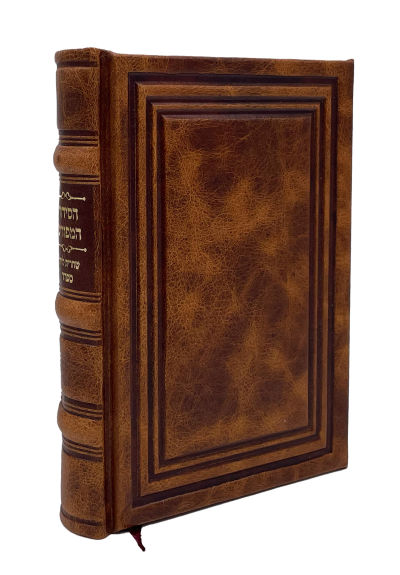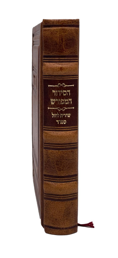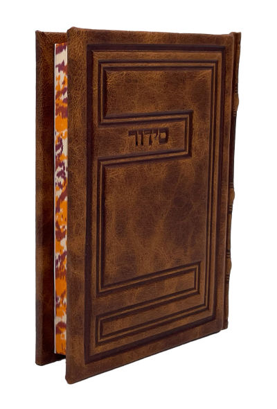 Antique Leather Siddur Meforash Weekday, Design #3, Size 5x7, Brown