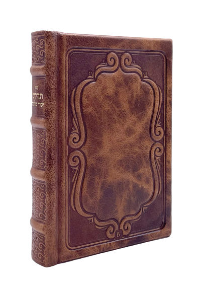 Antique Leather Tehillim Yesod Malchus, 5x7, Nesiuti Design, Light Brown