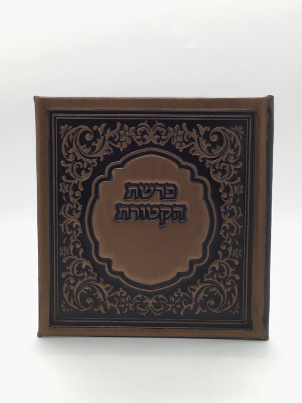 Antique Leather Parshas Haktores Holder, Chasidi Design, 6.5x6.5", Bronze