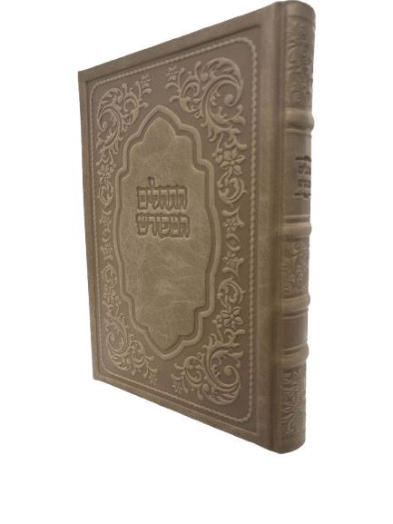 Antique Leather Tehillim Hameforash, Chasidi Design, 7x10, Taupe