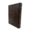 Antique Leather Sidder Hashlu Shabbos Chasidi Design 5x7 Light Brown