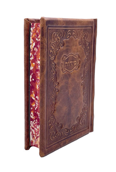 Antique Leather Siddur Hameforash Shabbos, 5x7, Chasidi Design, Light Brown